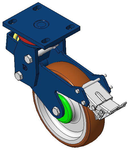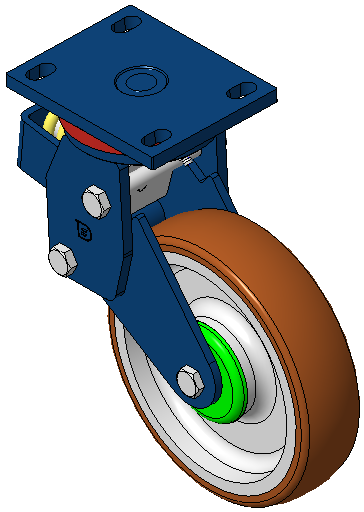 Blue painted finish, Mounting Type - Top Plate, 110x75 Bolt Hole Spacing Cast Iron core with High Quality Polyurethane Wheel Tread, Cast Iron brown Bearings—Ball Bearings |