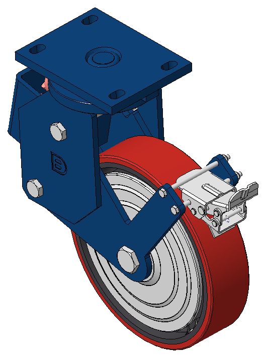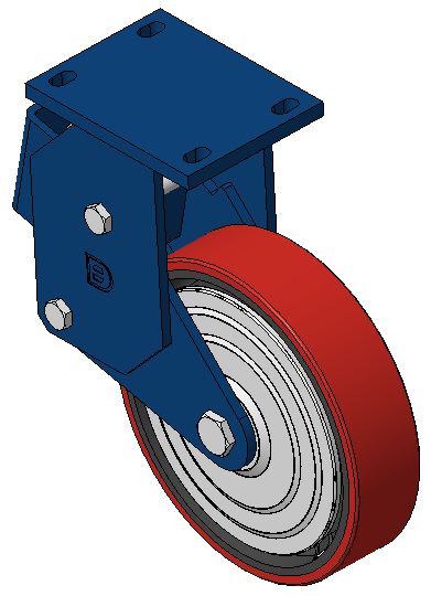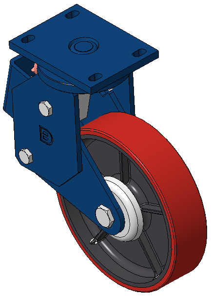 Blue painted finish, Mounting Type - Top Plate, 140x85 Bolt Hole Spacing Cast Iron Wheel Center with High Quality Polyurethane Wheel Tread, Cast Iron red Bearings—Ball Bearings |