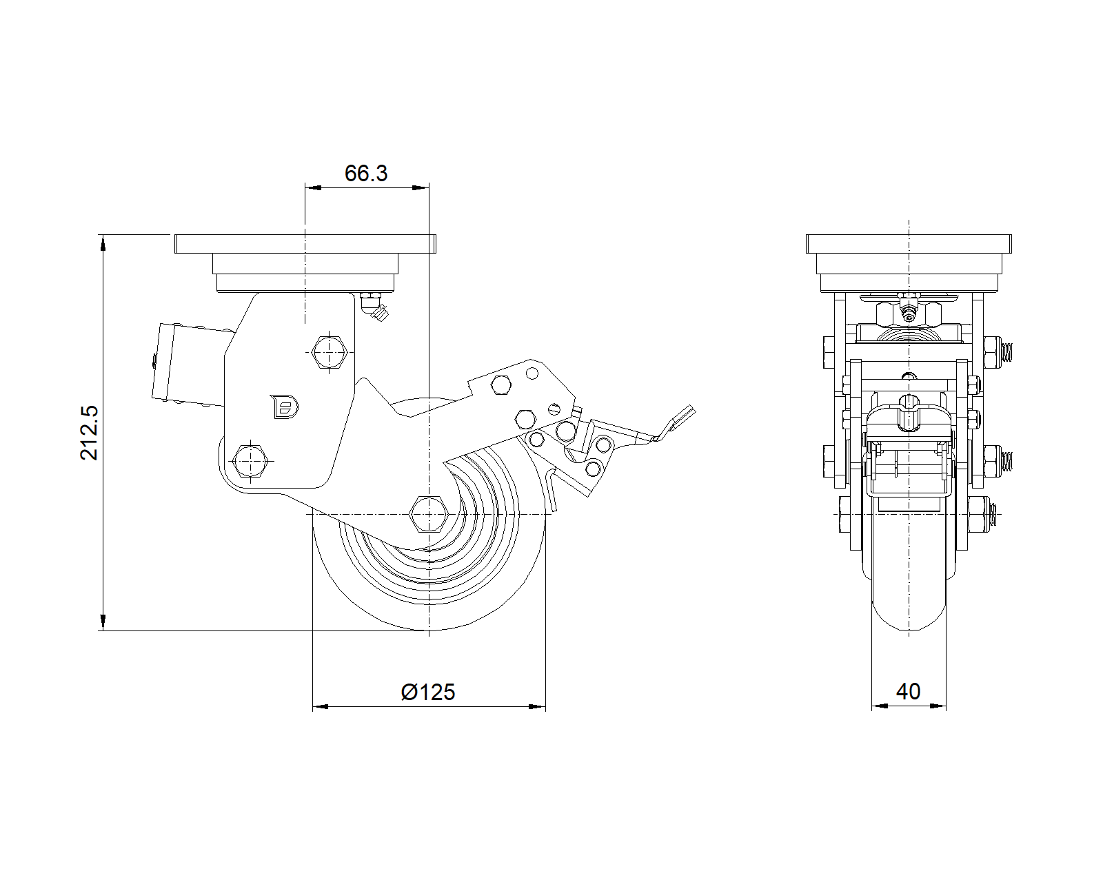 EQPU (brown round) Wheel Diameter x Wheel Width 125 x 40mm |