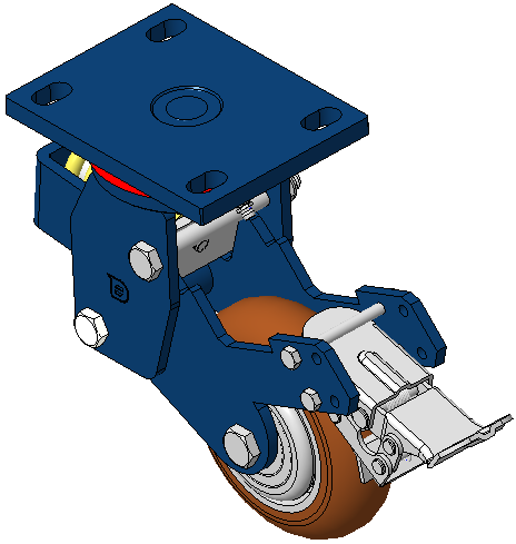 Blue-painted finish, Mounting Type - Top Plate, 110x75 Bolt Hole Spacing Cast Iron Wheel Center, High Quality Polyurethane Wheel Tread, Cast Iron brown Bearings—Ball Bearings |
