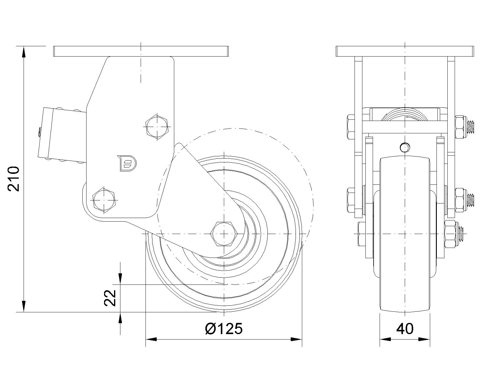 Wheel tread: Made of high-quality polyurethane Wheel Center: iron core/cast iron core Drawings are for reference only and may differ from the product |