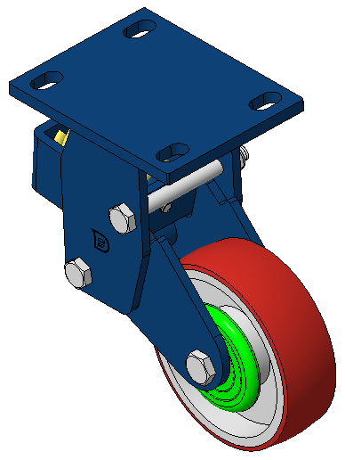 Rigid Spring-loaded Caster with Welded Caster Fork Blue painted finish, Mounting Type - Top Plate, 110x75 Bolt Hole Spacing Cast Iron core with High Quality Polyurethane Wheel Tread Red Cast Iron finish, Bearing – Ball Bearings |