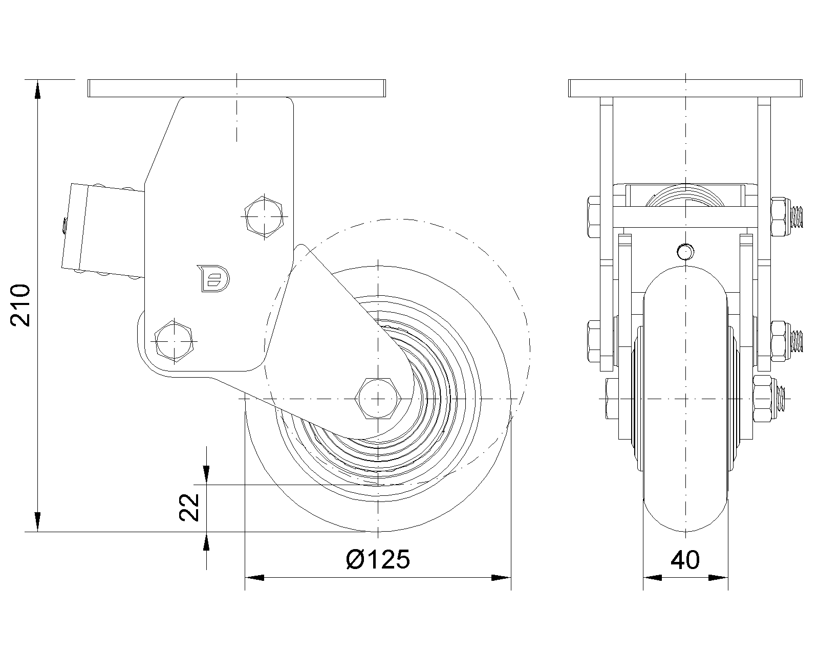 EQPU (Brown round) Wheel Diameter × Wheel Width 125 x 40mm |