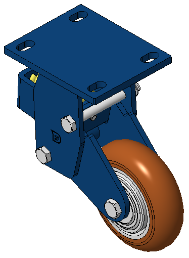 Rigid Spring-loaded Caster with Welded Caster Fork Blue painted finish, Mounting Type - Top Plate, 110x75 Bolt Hole Spacing Cast Iron core with High Quality Polyurethane Wheel Tread Cast Iron brown, Bearing – Ball Bearings |