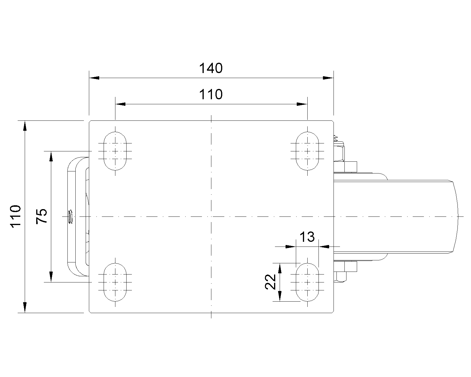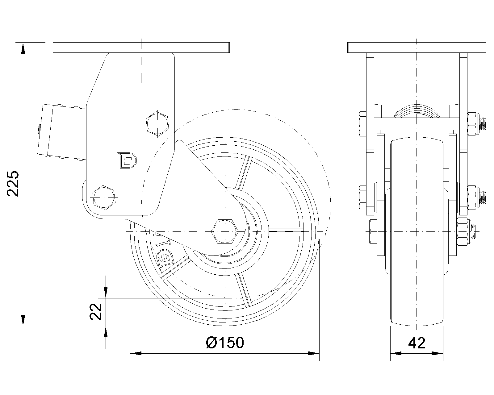 Rigid Spring-loaded Caster with Welded Caster Fork Blue painted finish, Mounting Type - Top Plate, 110x75 Bolt Hole Spacing Cast Iron core with High Quality Polyurethane Wheel Tread Cast Iron brown, Bearing – Ball Bearings |
