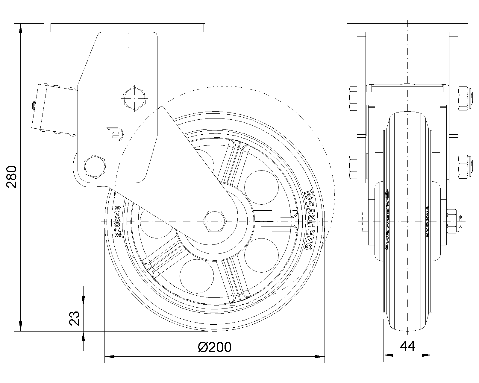 Non-marking NBR Rubber (milling) Wheel Diameter x Wheel Width 200 x 44mm |