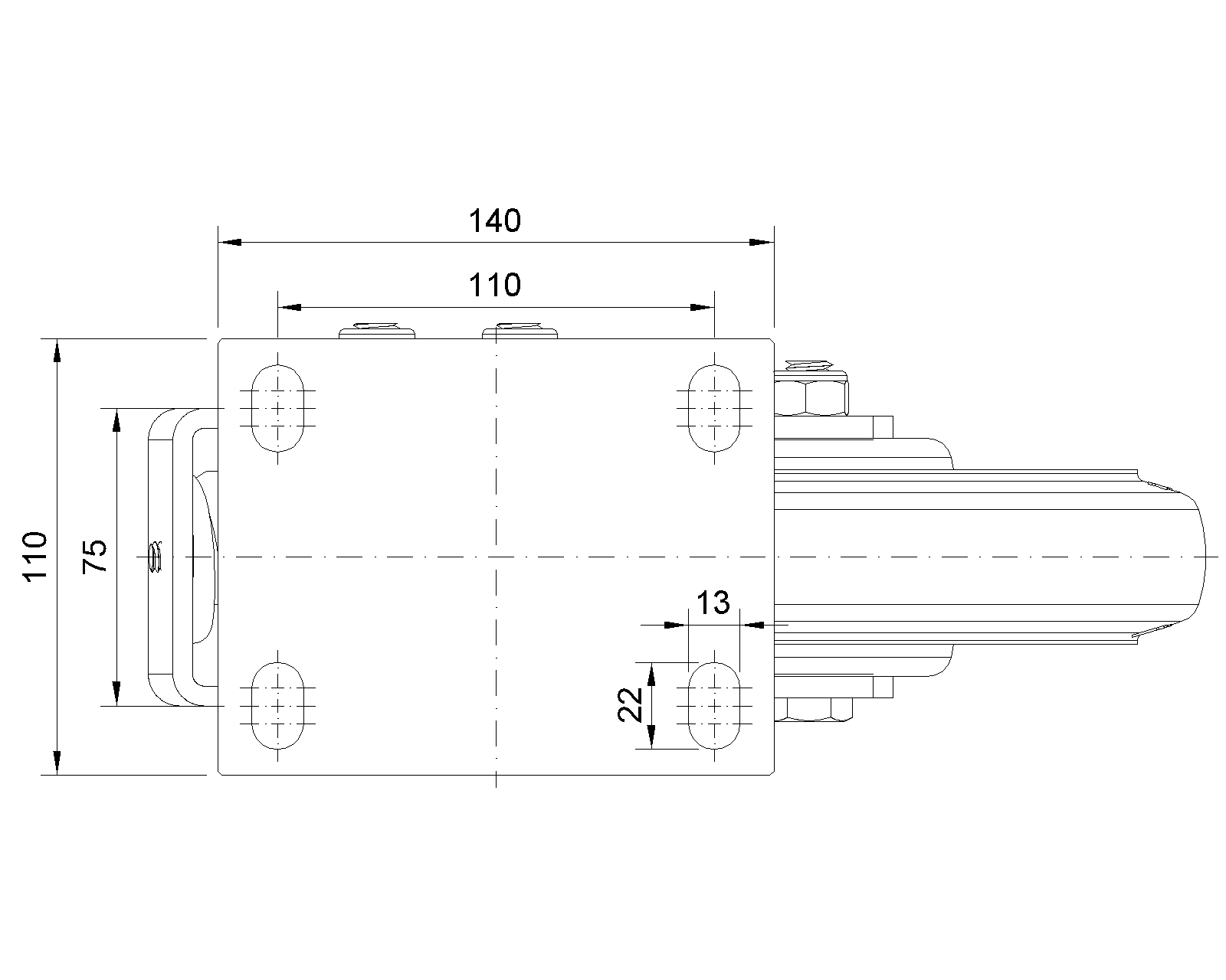 Rigid Spring-loaded Caster with Welded Caster Fork Blue painted finish, Mounting Type - Top Plate, 110x75 Bolt Hole Spacing Cast Iron core with High Quality Polyurethane Wheel Tread Cast Iron black, Bearing – Ball Bearings |