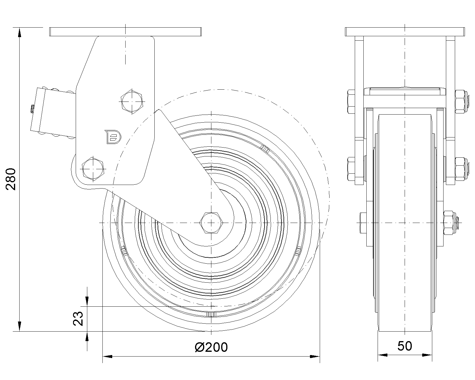 Wheel tread: Made of high-quality polyurethane Wheel Center: iron core/cast iron core Drawings are for reference only and may differ from the product |