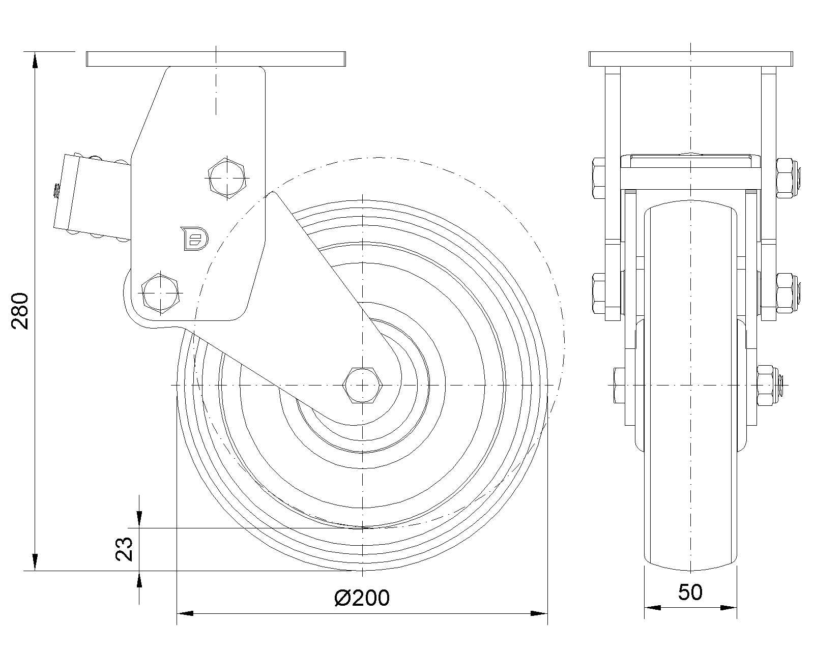 VQPU (brown round) Wheel Diameter x Wheel Width 200 x 50mm |