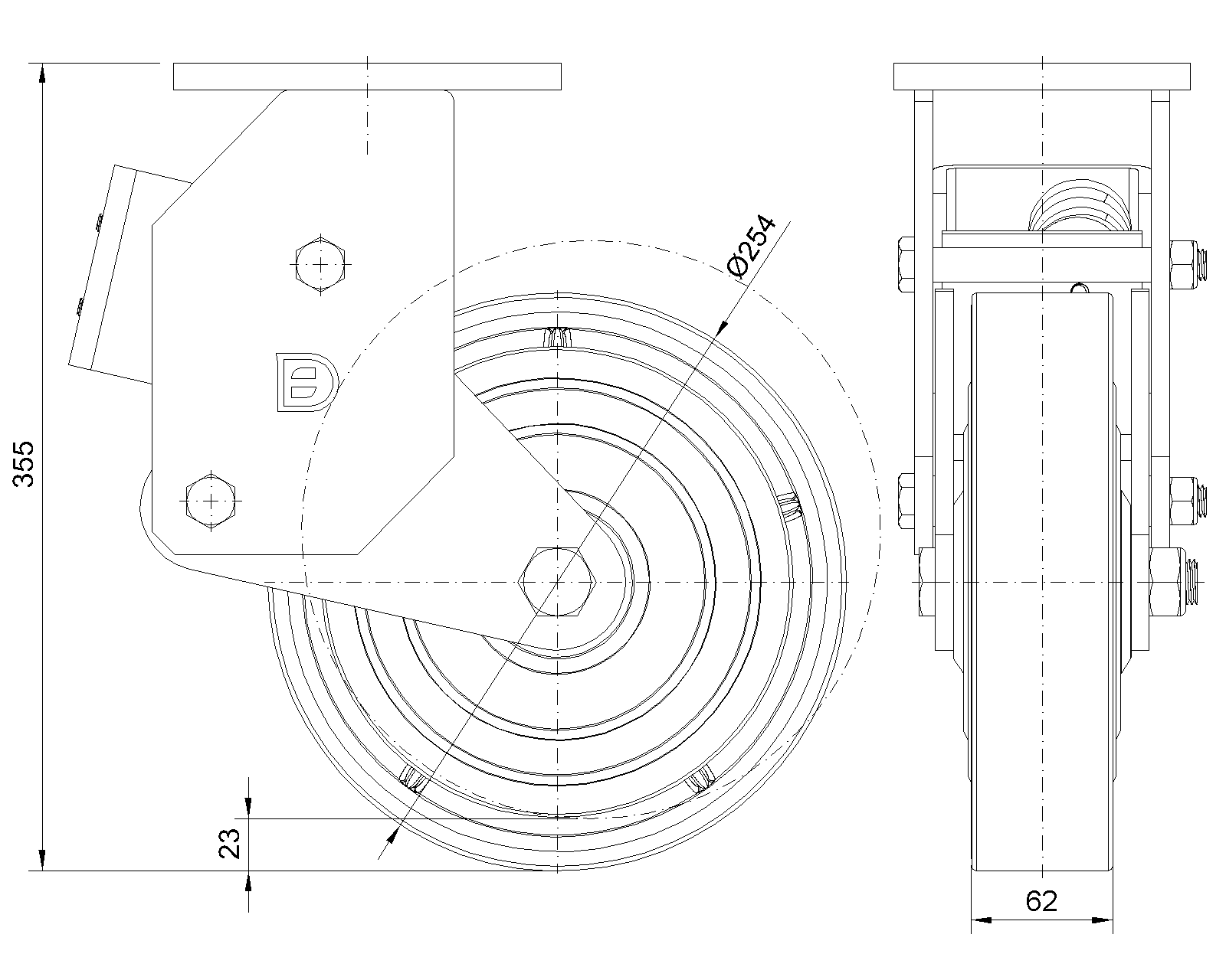 Wheel tread: Made of high-quality polyurethane Wheel Center: iron core/cast iron core Drawings are for reference only and may differ from the product |