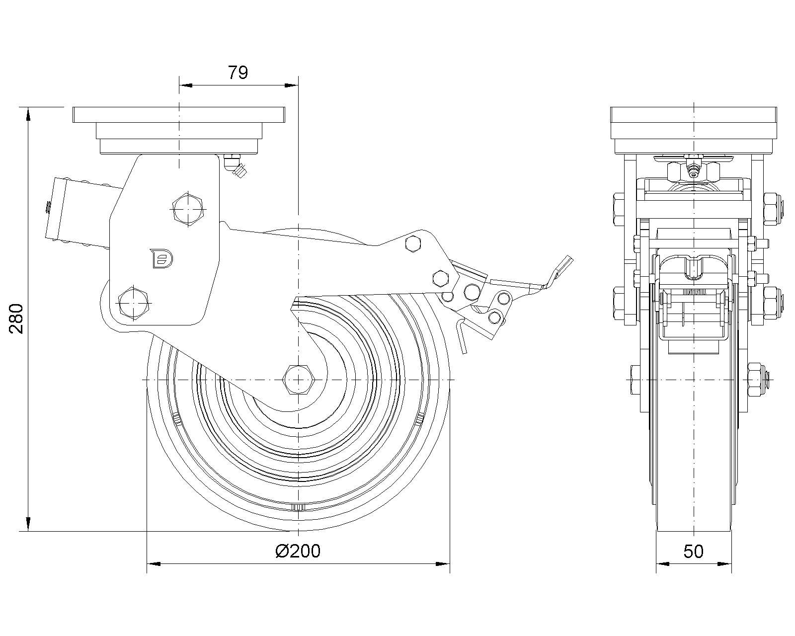 QPU (brown round) Wheel Diameter x Wheel Width 200 x 50mm |