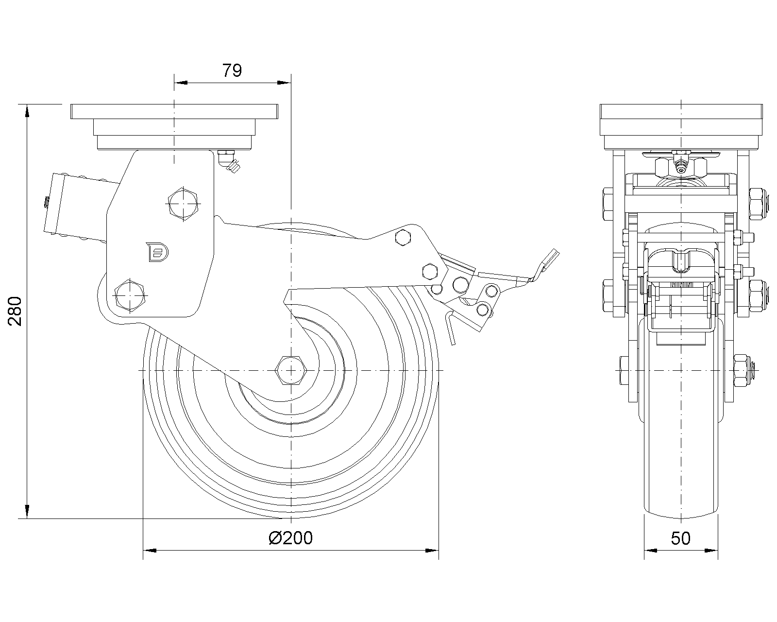 VQPU (brown round) Wheel Diameter x Wheel Width 200 x 50mm |