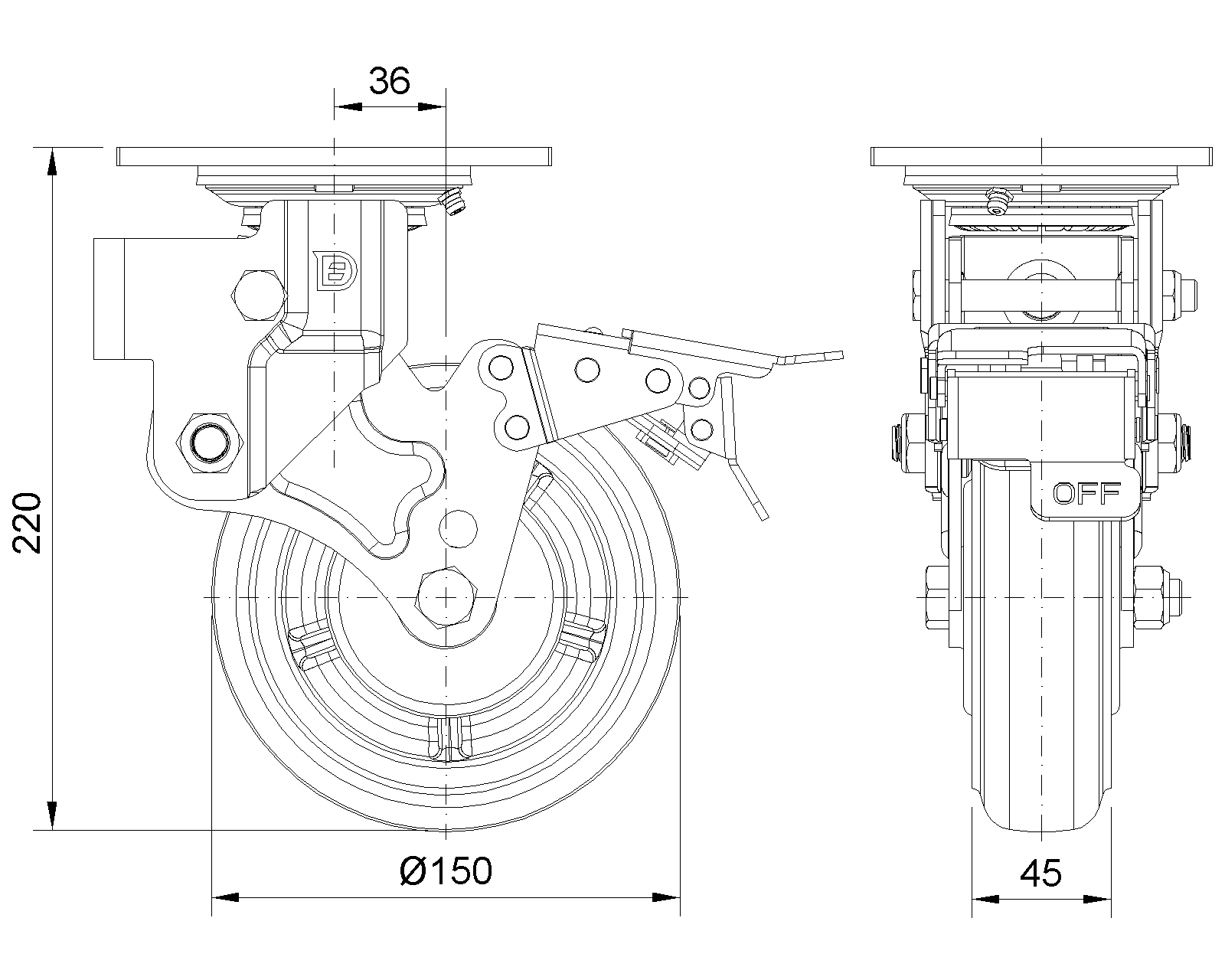 Wheel tread: Made of high-quality polyurethane Wheel Center: iron core/cast iron core Drawings are for reference only and may differ from the product |