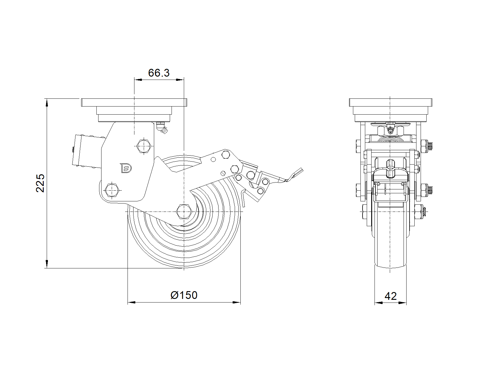 | Bánh xe VQPU (hồ quang nâu) Đường kính bánh xe × Chiều rộng bánh xe 150 x 42mm |