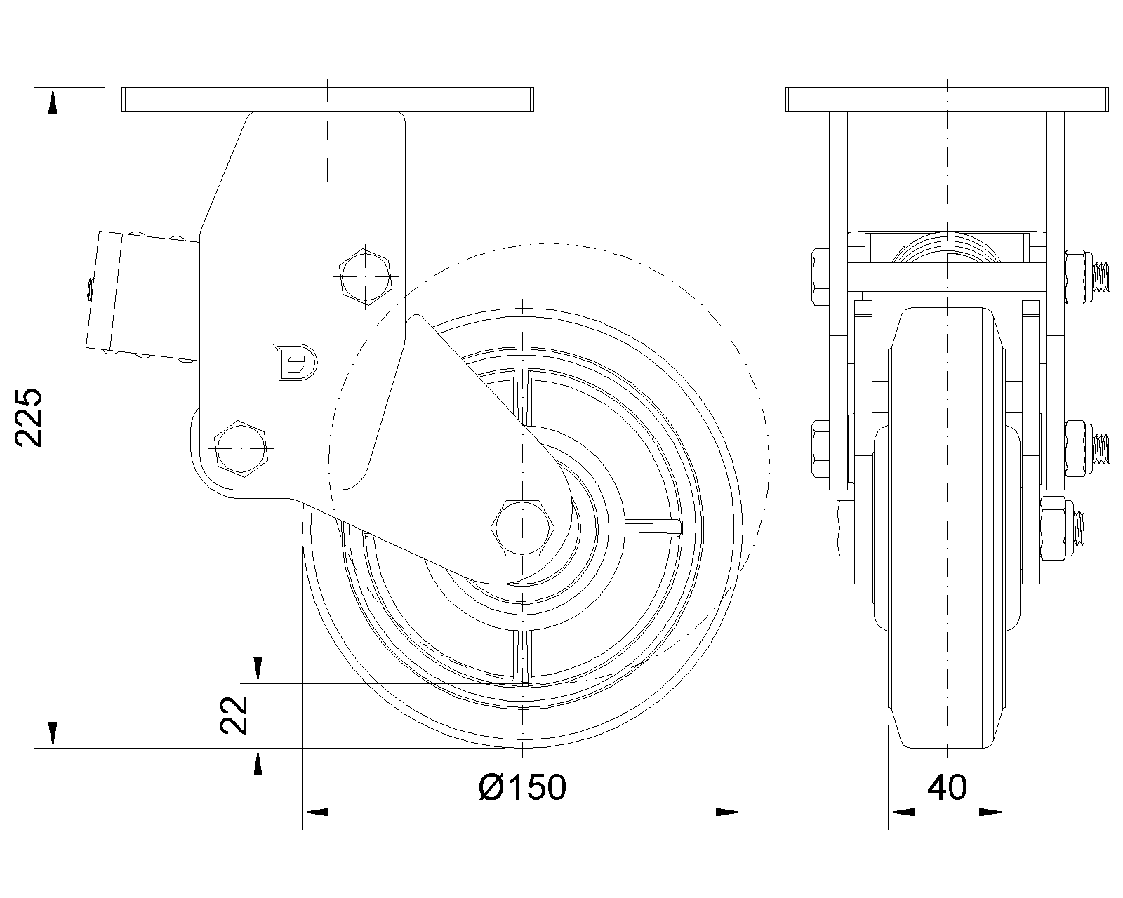 | Kéo NBR Wheel (Mill Raw) Đường kính bánh xe × Chiều rộng bánh xe 150 x 40mm |