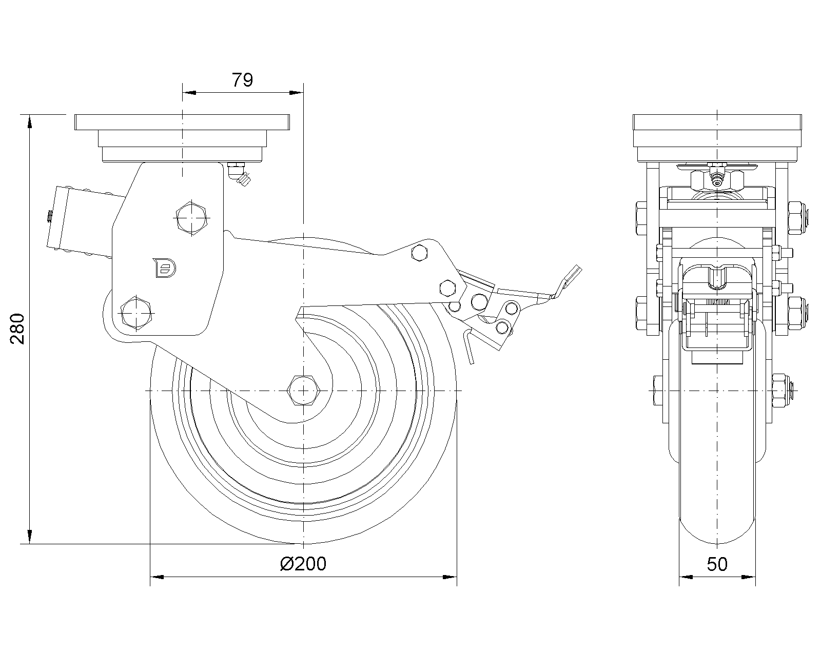 | Bánh xe EQPU (hồ quang nâu) Đường kính bánh xe × Chiều rộng bánh xe 200 x 50mm |