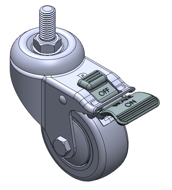 | 活动式脚轮,牙心铆合冲压脚架—1/2"-12牙 表面振动,丝扣式安装装置 耐冲击聚丙烯轮芯,热塑性弹性体(TPR)轮面 灰色,轮子轴承—精密滚珠。 |