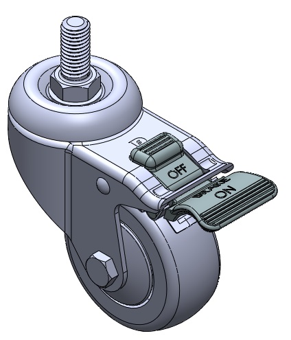 | 活动式脚轮,牙心铆合冲压脚架—1/2"-12牙 表面振动,底板式安装装置 耐冲击聚丙烯轮芯,热塑性弹性体(TPR)轮面 灰色,轮子轴承—精密滚珠。 |