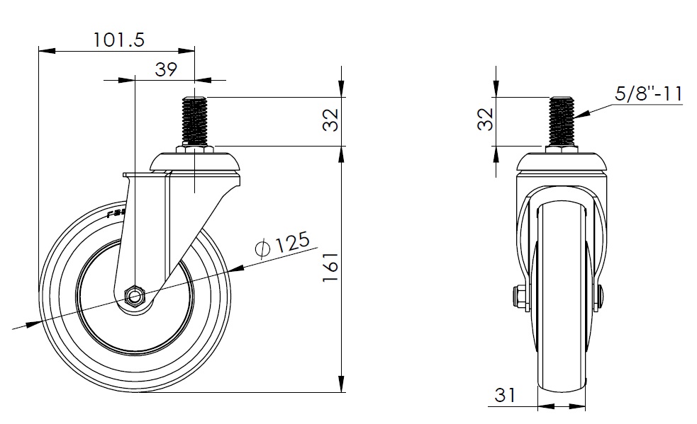 | PPR轮(S) 轮径 × 轮宽 125 x 31mm |