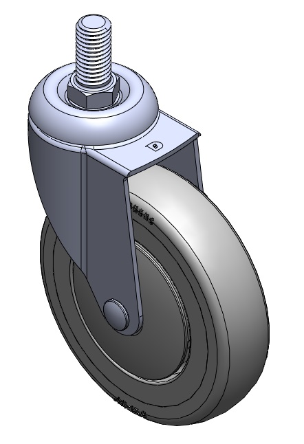 | 活動式腳輪,牙心鉚合沖壓腳架—5/8"-11牙 表面振動,絲扣式安裝裝置 耐衝擊聚丙烯輪芯,熱塑性彈性体(TPR)輪面 灰色,輪子軸承—精密滾珠。 |