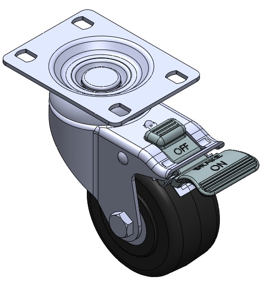 | 配有雙煞式,鎖定系統的腳輪。牙心鉚合沖壓腳架—1/2"-12 牙 表面振動,絲扣式安裝裝置(鋅鋁合金踏板) 浸軟織物的壓縮合成樹脂輪芯、輪面 黑色,輪子軸承—精密長珠。 |