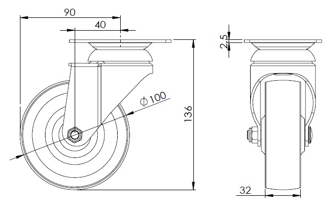 Nylon Wheel Diameter × Wheel Width 100 x 32mm |