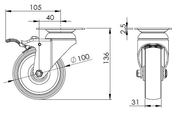 Nylon Wheel Diameter × Wheel Width 100 x 31mm |