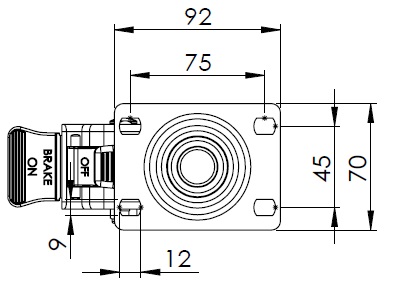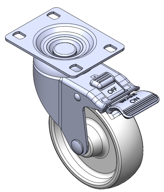 Casters with dual brakes and With locking system. Top Plate Riveted and Stamping with 75 x 45 mm (3" x 1-3/4") Bolt Hole Spacing. Surface vibration, Mounting Type - Top Plate (zinc-aluminum alloy pedal). Reinforced Polypropylene Wheel Center and Wheel Tread. Bearing - Plain Bearing. |