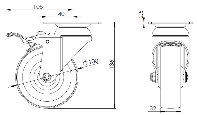 Nylon Wheel Diameter × Wheel Width 100 x 32mm |