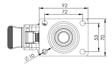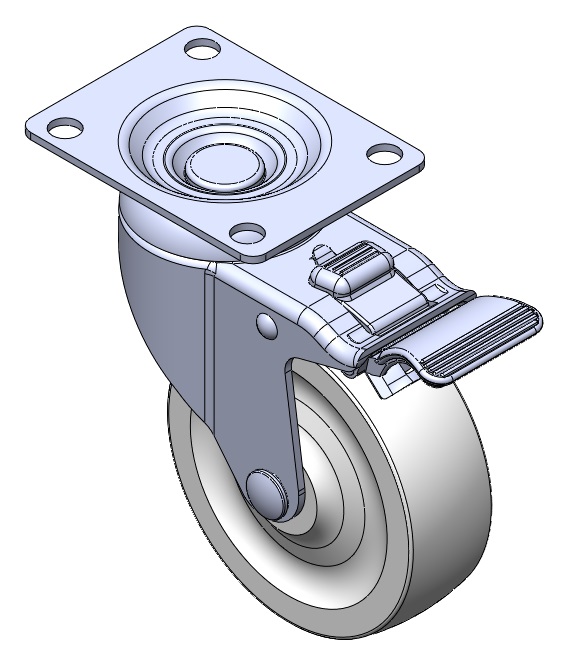 Casters with Total Brakes and With locking system. Riveted, Stamping Top Plate with 72 x 53.5 mm (2-7/8" x 2-1/8") Bolt Hole Spacing. Surface vibration, Mounting Type - Top Plate (zinc-aluminum alloy pedal). Reinforced Polypropylene Wheel Center and Wheel Tread. Bearing - Plain Bearing. |