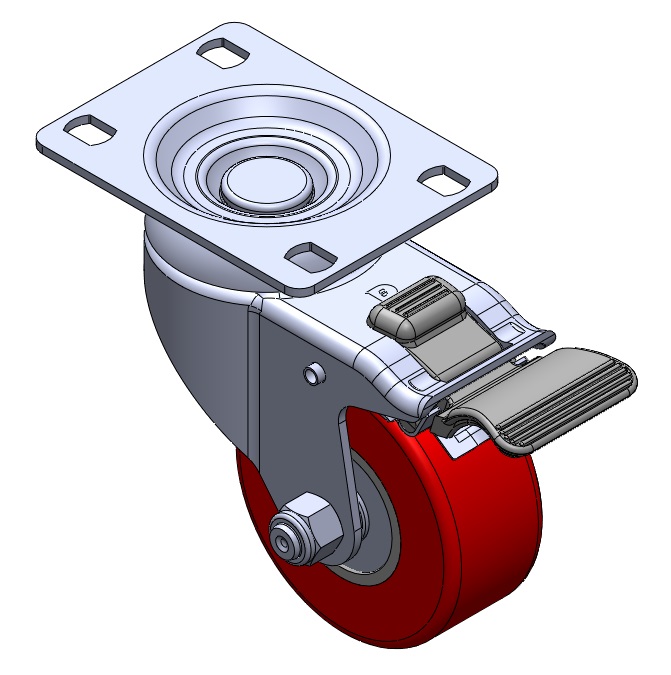 | Rigid Casters, Stamping Fabricated Caster Fork — high-grade perforated design Surface vibration, Mounting Type - Top Plate device Cast Iron Wheel Center, High Quality Polyurethane Wheel Tread Cast Iron red, Bearing — Ball Bearings. |
