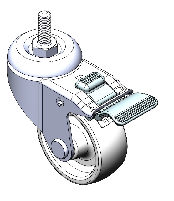 | Swivel Casters, Threaded Stem Stamping Fork—3/8"-16 thread; surface vibration resistant, Mounting Type - Top Plate; thermoplastic Wheel Center and rim; white; Plain Bearings. |