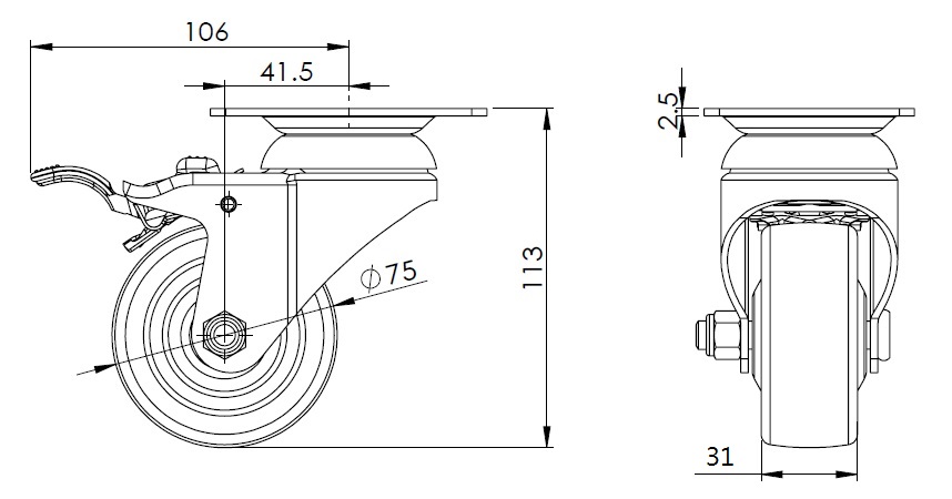 | Rubber Wheel Diameter × Wheel Width 75 x 31mm |