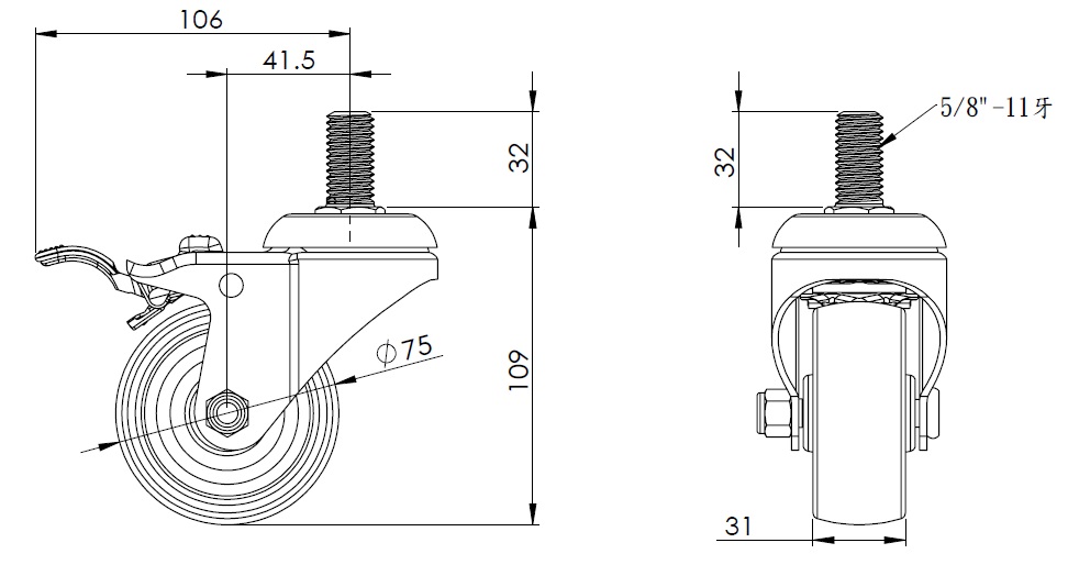 | Nylon Wheel Diameter × Wheel Width 75 x 31mm |
