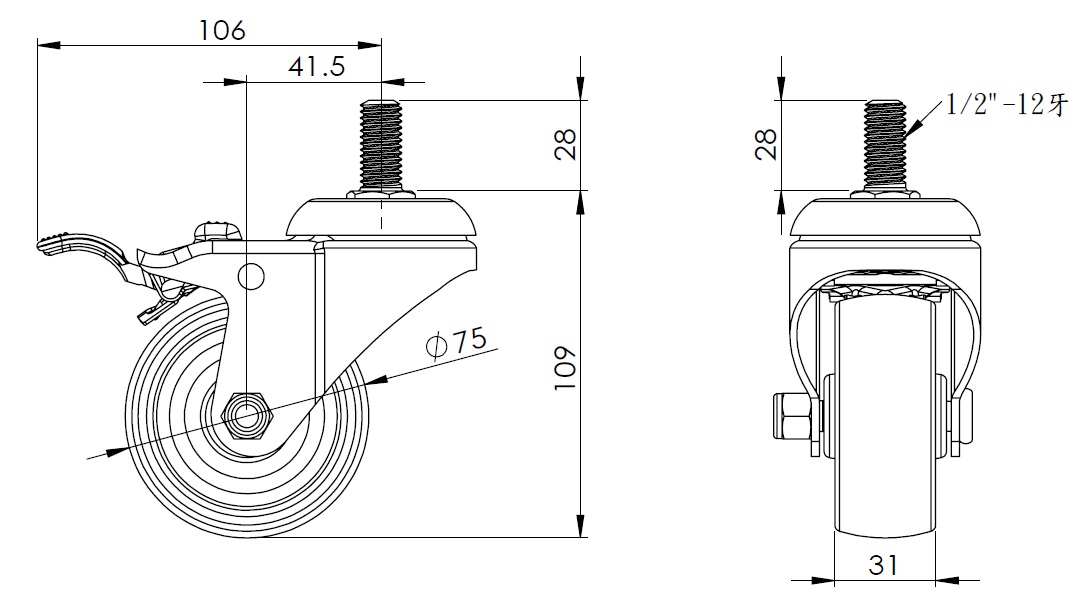 | Nylon Wheel Diameter × Wheel Width 75 x 31mm |