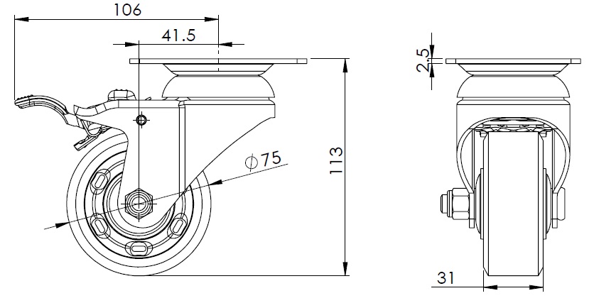 | W Resolute Wheel Diameter × Wheel Width 75 x 31mm |