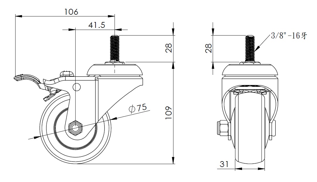 | Resolute Wheel Diameter × Wheel Width 75 x 31mm |