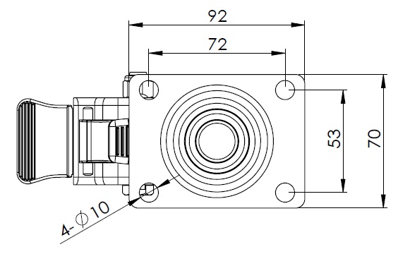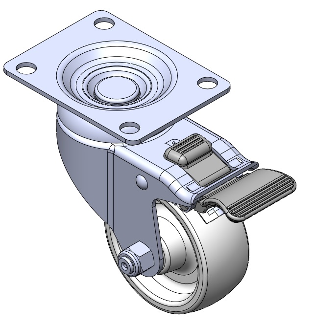 | Equipped with double-brake locking Casters. Riveted and Stamping Top Plate with 72 x 53.5 mm (2-7/8" x 2-1/8") Bolt Hole Spacing. Surface vibration, Mounting Type - Top Plate device. Reinforced Polypropylene Wheel Center and rim. White, Plain Bearings. |