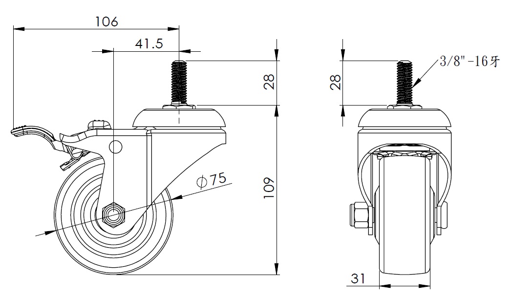 | Rubber Wheel Diameter × Wheel Width 75 x 31mm |