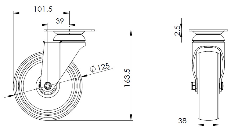 | Nylon Wheel Diameter × Wheel Width 125 x 38mm |