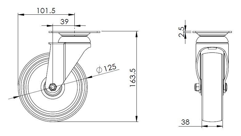 | Nylon Wheel Diameter × Wheel Width 125 x 38mm |