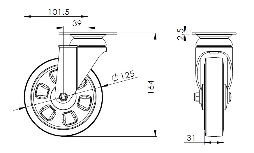 | W Resolute Wheel Diameter × Wheel Width 125 x 31mm |