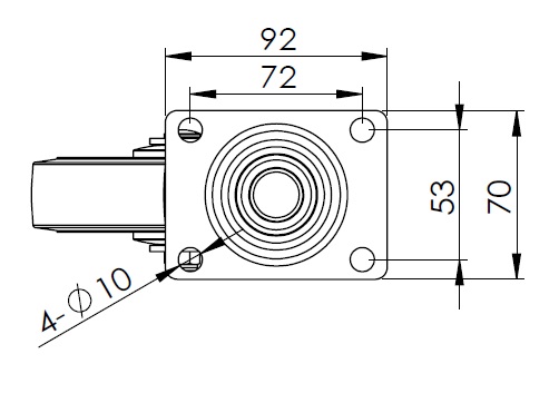 | Swivel Casters, Riveted and Stamping Top Plate bracket—72 x 53.5 mm (2-7/8" x 2-1/8") Bolt Hole Spacing Surface vibration, Mounting Type - Top Plate device Reinforced impact-resistant polypropylene Wheel Center, High-Quality Reinforced Polypropylene Rubber (TPR) Wheel Tread Gray, Bearing—Ball Bearings. |