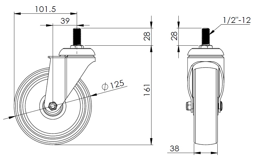 | Nylon Wheel Diameter × Wheel Width 125 x 38mm |