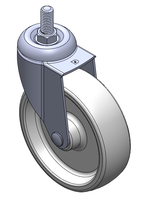 | Swivel Casters, Threaded Stem Stamping Fork—1/2"-12 UNC; surface vibration protection, Mounting Type - Threaded Stem; thermoplastic Wheel Center and rim; white; Plain Bearings. |