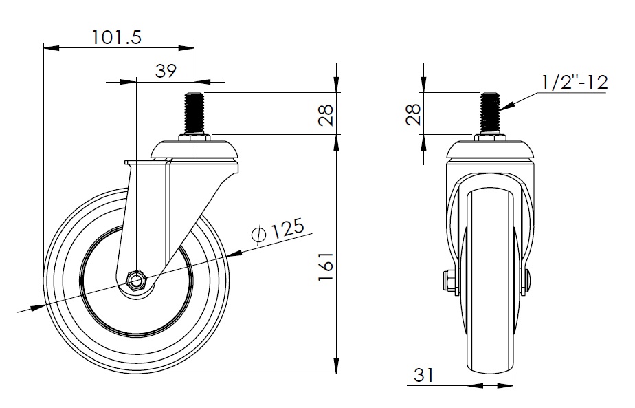 | Resolute Wheel Diameter × Wheel Width 125 x 31mm |