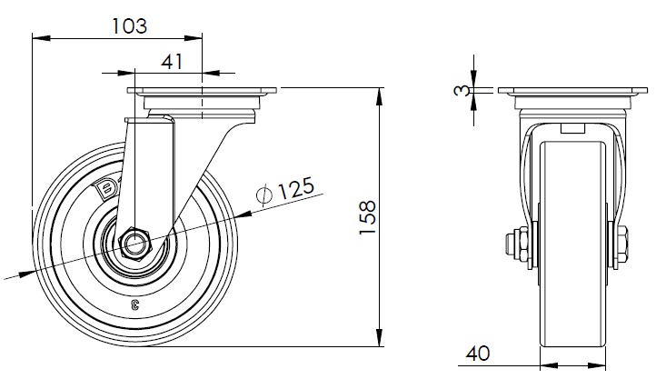 | Wheel surface: High-quality polyurethane Wheel Center: Iron core / Cast iron core Drawings are for reference only and may differ from the product |