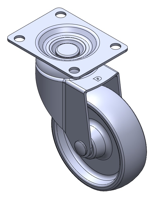 | 固定式腳輪,一體成型沖壓腳架 —儀器孔 表面振動,底板式安裝裝置 熱可塑性塑料輪芯、輪面 白色,輪子—中管式。 |