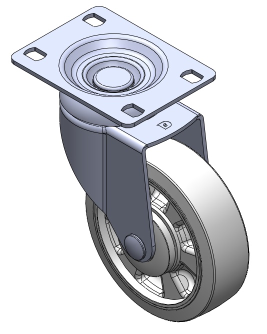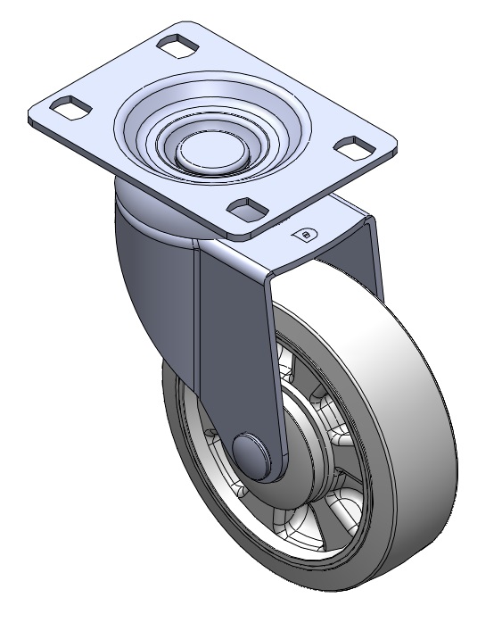 | 固定式腳輪,一體成型沖壓腳架 —高級孔 表面振動,底板式安裝裝置 加強型熱可塑性塑料輪芯、輪面 白色,輪子軸承—精密滾珠。 |