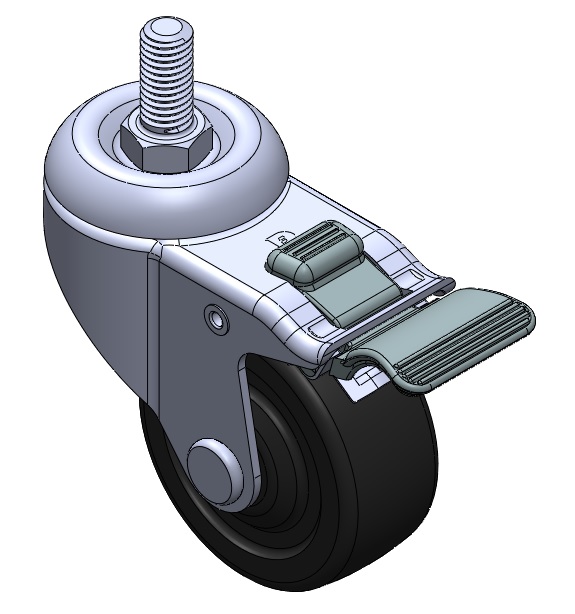 | 活動式腳輪,牙心鉚合沖壓腳架—1/2"-12牙 表面振動,底板式安裝裝置 高品質的彈力橡膠輪芯,輪面 黑色,輪子—中管式。 |
